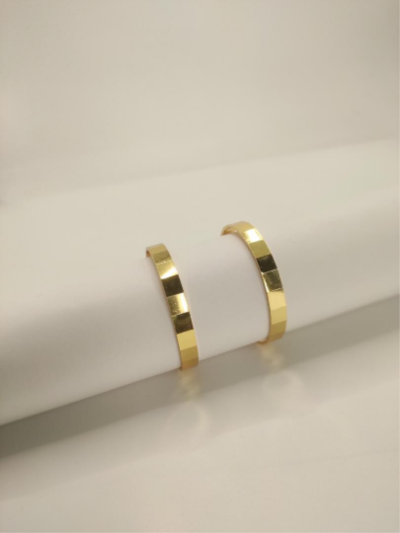 BanglesThese elegant gold bangles feature a unique hex-cut design that reflects light beautifully, giving them a sleek and modern look. With a smooth, high-polish finish, they offer a minimalist yet luxurious aesthetic—perfect for everyday wear as well as special occasions. Lightweight, stylish, and versatile, these bangles pair effortlessly with both traditional and western outfits.
