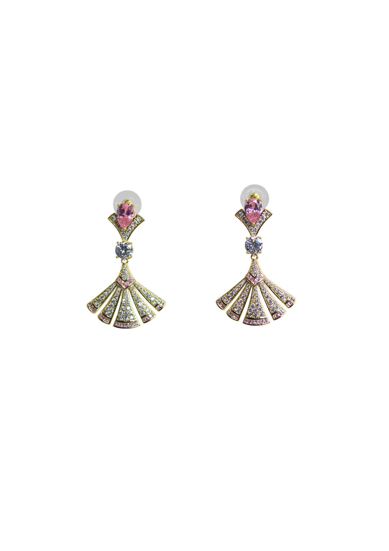 EarringsThe beautiful pink and blue gemstones at the top draw attention, while the sparkling diamonds form a captivating fan pattern that adds movement and elegance. These earrings are perfect for weddings, gala events, or any occasion where you want to shine. With their unique design and radiant gemstones, they are sure to become a standout piece in your jewelry collection.