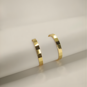 BanglesThese elegant gold bangles feature a unique hex-cut design that reflects light beautifully, giving them a sleek and modern look. With a smooth, high-polish finish, they offer a minimalist yet luxurious aesthetic—perfect for everyday wear as well as special occasions. Lightweight, stylish, and versatile, these bangles pair effortlessly with both traditional and western outfits.