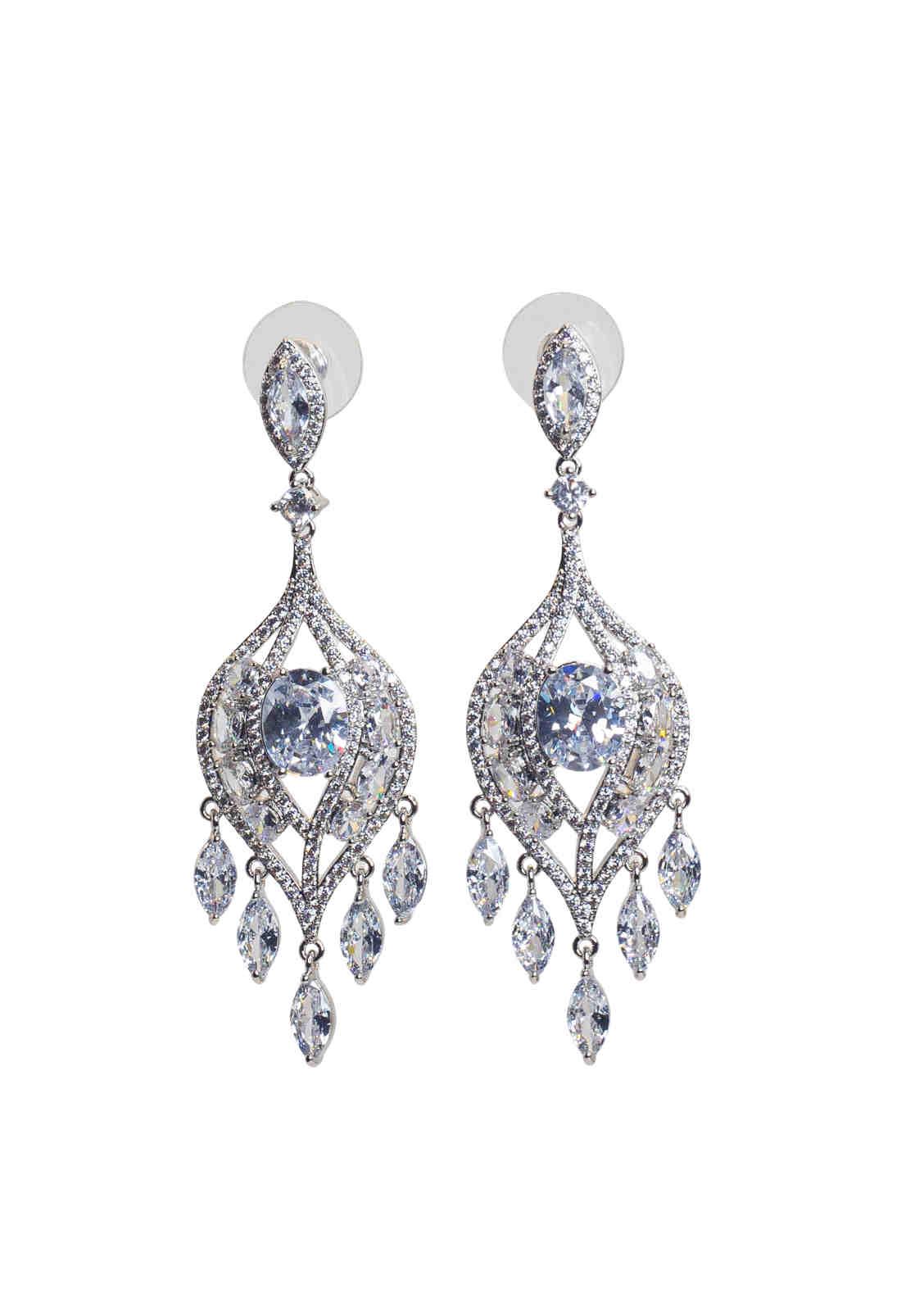 EarringsThese sparkling earrings are crafted to perfection with a combination of round and marquise-cut diamonds, arranged in a beautiful chandelier design. The central large diamond is surrounded by smaller marquise diamonds that cascade downward, creating a mesmerizing effect. The elegant silver setting enhances the brilliance of each diamond, making these earrings a perfect choice for weddings, galas, or any formal event. Their timeless design ensures they will remain a treasured part of your jewelry collection for years to come.