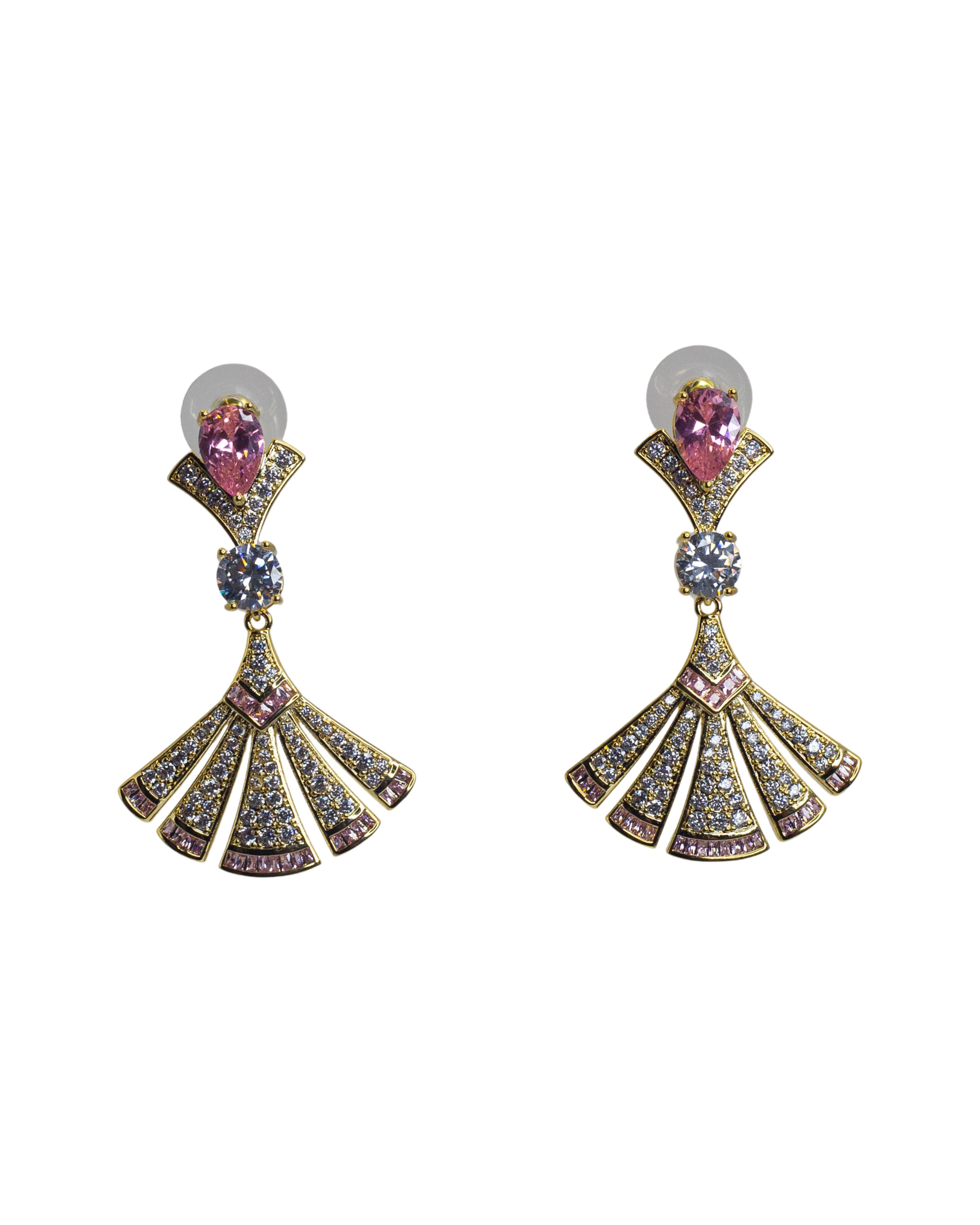 EarringsThe beautiful pink and blue gemstones at the top draw attention, while the sparkling diamonds form a captivating fan pattern that adds movement and elegance. These earrings are perfect for weddings, gala events, or any occasion where you want to shine. With their unique design and radiant gemstones, they are sure to become a standout piece in your jewelry collection.