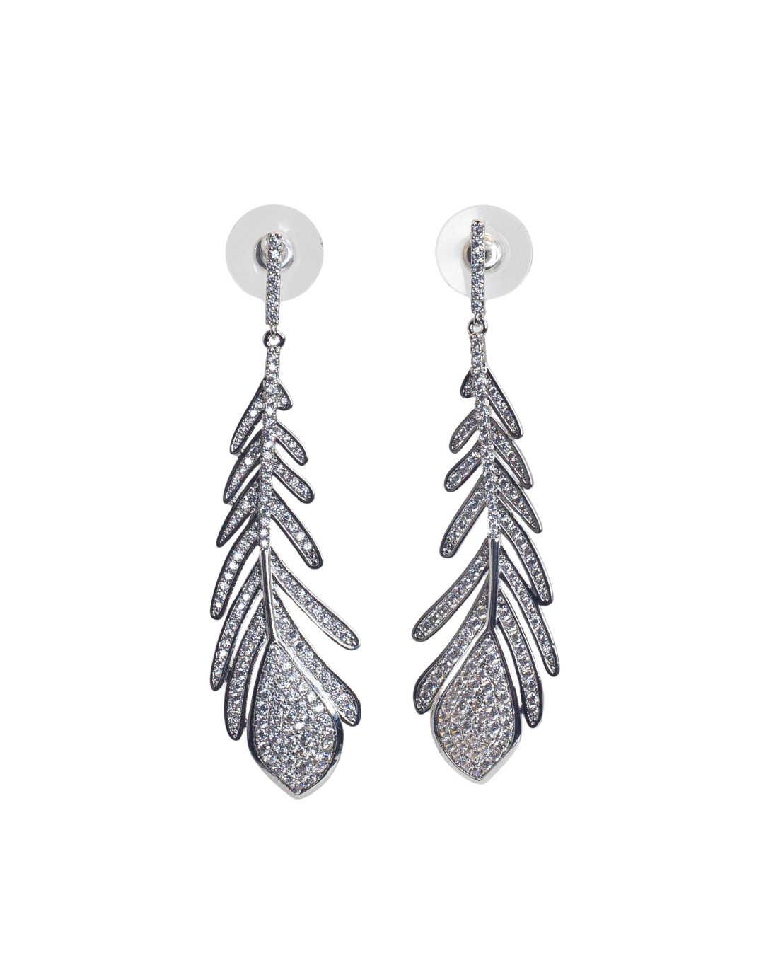 These unique earrings are inspired by the graceful shape of feathers. The silver design is embellished with shimmering diamonds, making these earrings a perfect blend of nature-inspired beauty and refined elegance. Whether for a wedding or a sophisticated evening out, these earrings will add a touch of delicate luxury to any look.