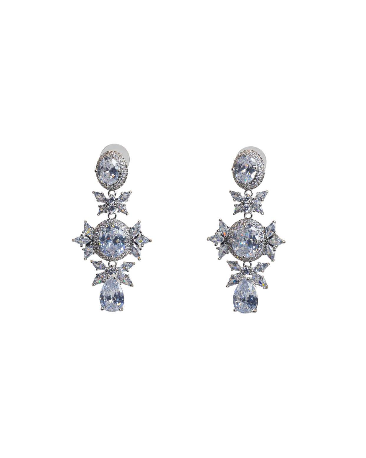 EarringsThese earrings showcase a refined chandelier design, with large central diamonds and delicately arranged marquise stones that cascade downward in a graceful and elegant manner. Ideal for brides or special occasions, they add a touch of glamour and sophistication to any attire, making them a must-have for those who appreciate fine jewelry and timeless beauty.